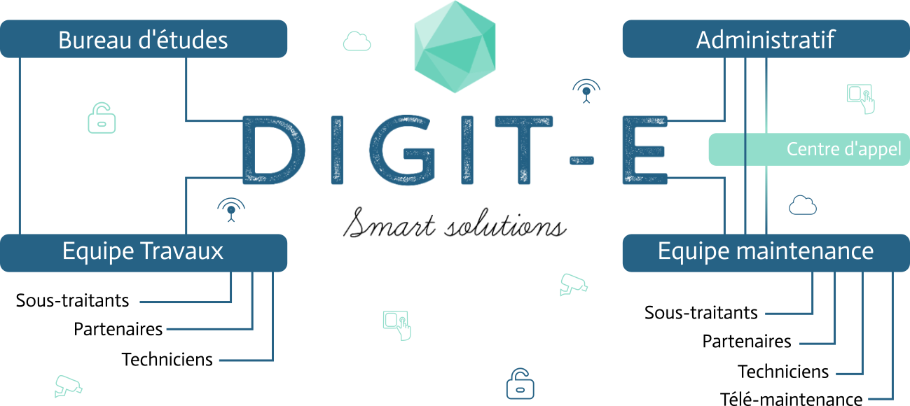Certifiée Qualif Elec, l’entreprise s’engage dans une relation de proximité, avec une approche personnalisée et un interlocuteur unique pour accompagner chaque projet. Véritable architecte de votre sécurité, DIGIT-E réalise une veille technologique constante afin de proposer des solutions adaptées à vos besoins, à vos contraintes techniques et à votre budget.